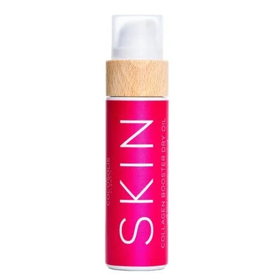 Натуралното сухо масло Колаген Бустер от Кокосолис за лице и тяло с антиейдж действие е комбинация от 6 био масла от супер-плодове и натурална активна съставка. То запазва кожата млада, свежа и стегната, намалява появата на фини линии и бръчки. Маслата от супер-плодове, сред които годжи бери, нар, маракуя, шипка и кокос нежно овлажняват, витаминизират и обновяват кожата. С натурални антиоксиданти. Подходящ за хора с нежна и чувствителна кожа. Попива бързо и в дълбочина. С освежаващ аромат на екзотични плодове. Предлага се в опаковка от 110 мл.