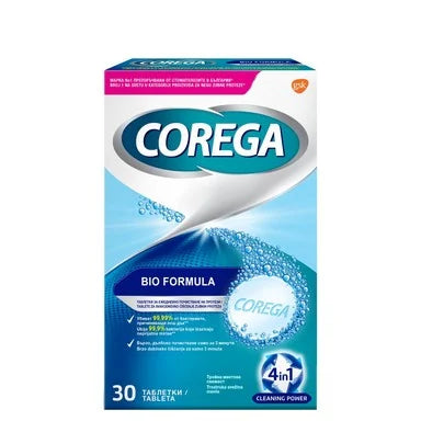 Корега Био Формула почистващи таблетки за зъбни протези са специално създадени ефервесцентни таблетки от английската фармацевтична компания GlaxoSmithKline в подкрепа на хората, използващи зъбни протези. Таблетките имат силно антибактериално и почистващо действие, чрез което елиминират 99,9% от бактериите, които причиняват лошия дъх и същевременно с това отстраняват упоритите петна и наслоената плака и осигуряват свеж дъх на мента. Таблетките Корега предотвратяват възпаленията в устната кухина и образуването на зъбен камък.