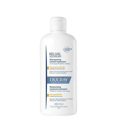 Келуал Скванорм е хидратиращ третиращ шампоан, разработен от Дюкре за сух пърхот, базиран на продължителния ефект на пробиотиците. Формулата с Probiotic-Science технология отстранява видимия пърхот, като същевременно предотвратява повторната му поява. Възстановява баланса, хидратацията и комфорта на скалпа, а на косата придава мекота, еластичност и блясък. Успокоява сърбежа и усещането за опъване. Подходящ за възрастни и деца от 12-годишна възраст. Предлага се в опаковка от 400 мл.