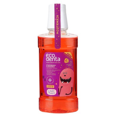 Водата за уста Екодента Kake Make е подходяща за използване след всяко миене на зъбите като допълнителна ежедневна защита на детските зъби. Тя спомага за предпазването им от плака и кариес, като същевременно почиства труднодостъпни места, до които четката за зъби не може да достигне. Притежава аромат на ягоди, сок от алое вера, етерично масло от мента и ксилитол. С 96% съставки от натурален произход. Не съдържа алкохол и флуорид. Подходяща за деца над 3 години. Предлага се в опаковка от 250 мл.