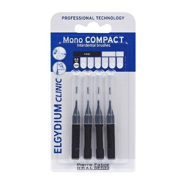 Елгидиум от серията Моно Компакт е интердентална четка за поддържане на орална хигиена между зъбите. Тя има фини влакна, които почистват деликатно интерденталните пространства, премахват остатъците от храна и предпазват от натрупване на плака. С компактен дизайн и удобна дръжка за оптимален комфорт при употреба. Размер 0,6 мм. Предлага се в опаковка от 4 броя.