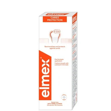 Полезна за предотвратяване на кариеси, водата за уста Елмекс укрепва емайла и оставя зъбите безупречно чисти. Обогатена с аминофлуорид, който укрепва и реминерализира емайла. Клинично тествана. Подходяща за ежедневна орална хигиена на цялото семейство. Предлага се в опаковка от 400 мл.