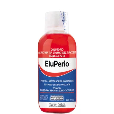 Елуперио Вода за уста се препоръчва преди третирания в устната кухина като допълнение към продуктите за грижа за устната кухина, като защита от отлагане на плака. Осигурява ежедневна хигиена на устната кухина. Помага за защита на чувствителнот на венците (зачервяване, раздразнение) благодарение на специално разработената си формула без алкохол. Предлага се в опаковка от 300 мл.