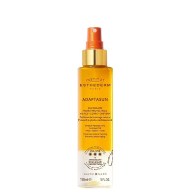 Esthederm Adaptasun Hydra-Protective Sun Water е двуфазна слънцезащитна вода, която спомага за запазване на хидратацията на кожата, когато е изложена на слънце. Активира и удължава тена благодарение на технологията Adaptasun, която оптимизира всички стъпки от процеса на пигментация за бърз, дълбок и дълготраен тен. Естедерм Адаптасън Слънцезащитна хидратираща вода е подходяща за лице, тяло и коса. Без парабени. Дерматологично тестван продукт. Предлага се в опаковка от 150 мл.
