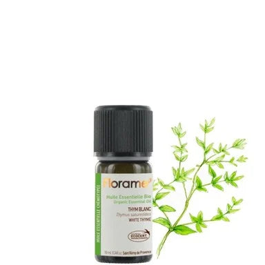 Органичното етерично масло от бяла мащерка Флорам с успокояващи свойства, 100% органично, чисто и натурално с установен хемотип. Добито е чрез парна дестилация от цветни пъпки. Предлага се в опаковка от 10 мл.