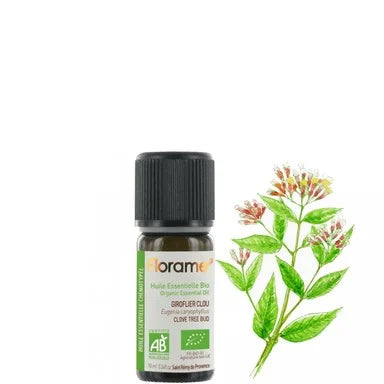 Органичното етерично масло на Флорам от карамфилово дърво има силен аромат. Известно е със своите болкоуспокояващи и стимулиращи свойства. То е 100% органично, чисто и натурално. Добито е чрез парна дестилация от цветни пъпки. Предлага се в опаковка от 10 мл.