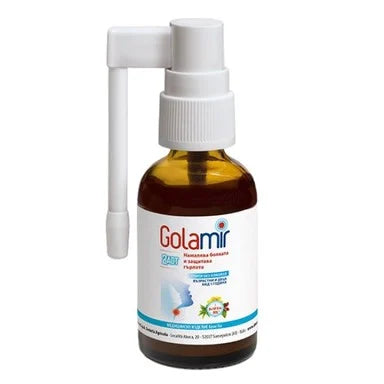 С формулата без алкохол, Голамир 2АКТ от Абока е предназначен за болки и дразнене в гърлото. Той притежава три ефекта, действа с нефармакологично, механично противовъзпалително действие, намалява болката и способства за възстановяването на лигавицата. Има и бариерно действие със защитна функция, която създава неблагоприятна среда за развитието на микроорганизмите. Обогатен с растителния молекулен комплекс ActiFilm DOL, който действа срещу болка, парене и затруднено преглъщане, предпазвайки лигавицата от тригерите на дразнене. Без глутен с приятен вкус. Приложим при деца от 1 годишна възраст, бременни и кърмещи майки. Предлага се в опаковка от 30 мл.