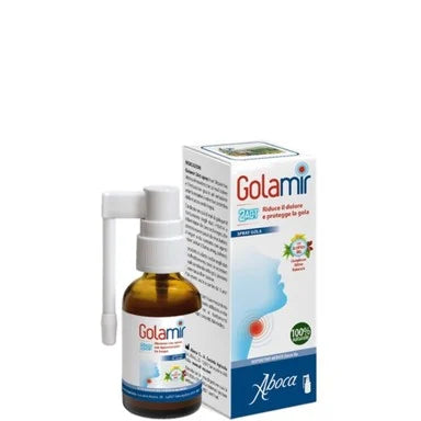Голамир 2 АКТ от Абока представлява спрей за гърло, който се прилага при настинка и възпалителни състояния на орофаренгиалната лигавица, в следствие на вируси, бактерии, алергени, както и при контакт с дразнещи външни агенти - дим, смог, прах и полени. Той намалява болката и защитава гърлото посредством двойно нефармокологично и противовъзпалително действие и създава неблагоприятна среда за развитието на бактерии. Благодарение на растителният молекулен комплекс ActiFilm DOL, спреят облекчава болка, парене и затруднено преглъщане, предпазвайки лигавицата от тригерите на дразнене. ActiFilm DOL е съставен от танини, смоли, полизахариди и флавоноиди, които образуват бариерен филм с двойно действие - предпазва и нормализира лигавицата и нейната повърхност. Добавените етерични масла от евкалипт и мента дават освежаващ ефект. Продуктът е без глутен с приятен вкус. Предлага се в опаковка от 30 мл.