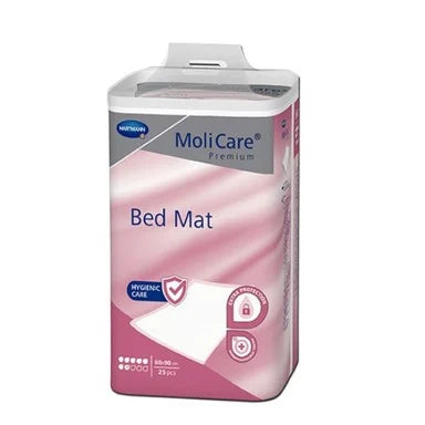 Моликеър са абсорбиращи чаршафи, подходящи при залежали пациенти, бебета, домашни любимци. Предназначени за предпазване на легла, матраци и други мебели. Сърцевината им е изработена от целулоза, която попива бързо течността. С предпазно фолио срещу хлъзгане и протичане. Горният слой на чаршафчето е от нетъкан материал, което му позволява да се запази сух за повече комфорт. За еднократна употреба в болнични или домашни условия. Абсорбационно ниво: 7 капки. Размер 60/90. Предлагат се в опаковка от 25 броя.