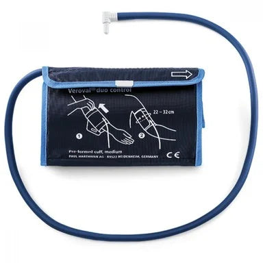Маншонът за ръката над лакътя Хартман Веровал Дуо контрол, размер M е съвместим с апарат за кръвно налягане Veroval Duo Control. За обиколка на бицепса 22-32 см. С безболезнено надуване на маншета, благодарение на технологията Comfort Air, която позволява напомпване според индивидуалното налягане, без излишно притискане. Предлага се в опаковка от 1 брой.