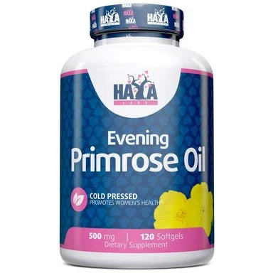 В подкрепа на женското здраве и имунитета масло от Evening Primrose Хая Лабс. Добито чрез процес на студено пресоване от растението вечерна иглика. С положително действие при контрола на телесното тегло и нормалната функция на сърдечно-съдовата система. Спомага за здравето на гърдите и за намаляване на симптомите при ПМС (пременструален синдром). Допринася за поддържане на нормален хормонален баланс. Вечерната иглика е богат източник на линолова киселина и гама-линоленова киселина (GLA) - мастна киселина, която се трансформира в организма до химични вещества включващи простагландини, а те от своя страна участват в редица процеси, включително в контрола и синтеза на холестерола. Маслото допринася за поддържане на здрави кожа и стави. Може да съдържа следи от мляко, яйца, пшеница и соя. Предлага се в опаковка от 120 меки капсули.