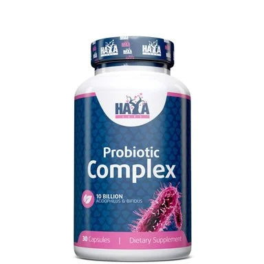 За здравето на чревна флора и храносмилателната система Probiotic complex от Хая Лабс, 4 вида полезни бактерии. Помага да се балансират "добрите" и "лошите" бактерии. Съдържа Lactobacillus acidophilus (6 милиарда) и Lactobacillus paracasei (600 милиона), в подкрепа на храносмилането. Bifidobacterium bifidum (2,8 милиарда) и Bifidobacterium longum (600 милиона), които защитават от заразяване с вируси и подкрепят имунната система. Предпазва от чревни инфекции. Предлага се в опаковка от 30 капсули.