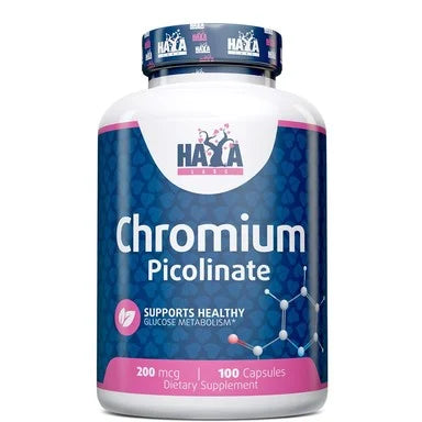 За контрол на кръвната захар в здравословни граници Chromium Picolinate от Хая Лабс. Хромът е ценен микроелемент, който има ключова роля за нормалната функция на тялото и клетъчното производство. Подпомага сърдечната дейност и зрението. Благоприятства за поддържането на здравословното тегло и хормонален баланс. Може да съдържа следи от мляко, яйца, пшеница и соя. Предлага се в опаковка от 100 капсули.