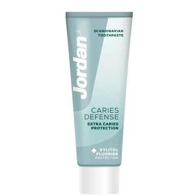 Пастата за зъби Джордан Кавити Дефенс предпазва от образуване на кариес и натрупване на плака, като същевременно с това, е нежна към емайла. Продуктът съдържа много високо ниво на ксилитол (9,9%) и притежава мек, но свеж вкус. Комбинацията от флуорид и ксилитол заздравява зъбите и подобрява тяхната реминерализация. Предлага се в опаковка от 75 мл.