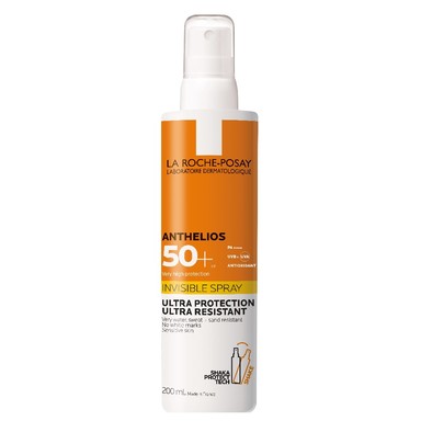 Подходящ за чувствителна към слънцето кожа, незабележимият слънцезащитен спрей на Антелиос Ла Рош Позе предлага висока, широкоспектърна и фото стабилна UVA-UVB защита. Той притежава SPF50+ защита, подсилена срещу UVA лъчите благодарение на патентованата филтърна система Mexoplex. В състава му е добавена термална вода La Roche-Posay, която успокоява, хидратира и действа антиоксидантно на кожата. Спреят предпазва от преждевременно стареене на кожата и от слънчева алергия. Водоустойчив, тестван под дерматологичен контрол. Предлага се в опаковка от 200 мл.