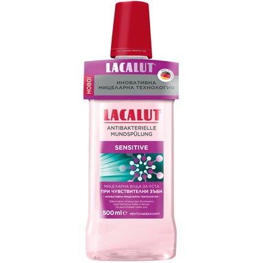 Антибактериална мицеларна вода за уста на Лакалут, предназначена за активна защита на болезнените и чувствителни зъби и венци. Употребата ѝ почиства цялата устна кухина, предпазва от натрупването на плака, респективно зъбен камък. Мицелите проникват и в най-труднодостъпните места и предотвратяват образуването на бактерии. Сензитив вода за уста е подходяща за употреба преди или след измиване на зъбите. Ефективно защитава от зъбна плака, успокоява венците и освежава дъха. Предлага се в опаковка от 500 мл.