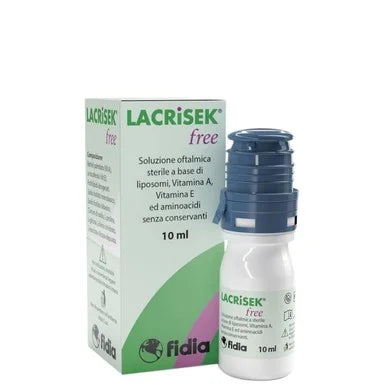 Лакрисек Фрий офталмологичен разтвор е стерилен продукт, който съдържа липозоми, витамин А, витамин Е и аминокиселини, без консерванти. Продуктът стабилизира липидния слой на слъзния филм, регулира и коригира овлажняването на повърхността на окото. Витамин A и витамин E в съчетание с липозомите (хидрогениран фосфатидихолин), осигуряват функционално подпомагане на липидната съставка в клепача. Витамините допринасят за подобряването на симптоматологията на окото и околоочната област, асоциирана с възпалителни състояния от алергичен и/или инфекциозен произход. Аминокиселините L-пролин, L-глицин, L-лизин хидрохлорид и L-левцин, подобряват овлажняването на повърхността на окото и могат да подобрят защитата на епитела, изложен на различни видове стрес. Капките се препоръчват при субективни оплаквания при синдром на сухото око, като усещане за чуждо тяло, парене и сърбеж в очите, при дислакримия поради намален липиден слой на слъзния филм или при състояния, които могат да причинят зачервяване на очите, често настъпващо с промени в определени фактори на околната среда (вятър, микроклимат и др.). Предлага се в опаковка от 10 мл.