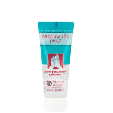 Антибактериалният гел за ръце Работливи ръце е с формула, която почиства и дезинфекцира ръцете, без необходимост от вода. Добавеното масло от мента предпазва от изсушаване и същевременно освежава и тонизира кожата. Гелът се нанася лесно и не се нуждае от изплакване с вода. Предлага се в опаковка от 75 мл.