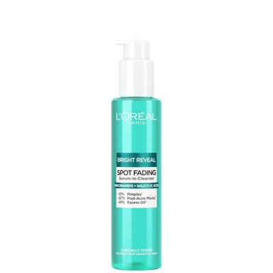 Гелът от Лореал почиства лицето и премахва замърсяванията от кожата. Намалява петната, изсветлява белезите от акне и коригира хиперпигментацията, като прави кожата сияйна. Подходящ за всички тонове и типове кожа, дори за чувствителна. С ниацинамид и салицилова киселина. Дерматологично тестван продукт. Предлага се в опаковка от 150 мл.