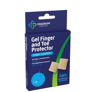 Магнум Медикал гел предпазител за пръсти, покрит с плат е предназначен за пръстите на ръцете и краката. Продуктът предотвратява образуването на мехури и мазоли, намалява триенето в обувките и облекчава болката. Може да се използва и при деформации като пръст-чукче, кръстосани пръсти, впити нокти или при наранени пръсти. С помощта на предпазителя може да продължите обичайния си дневен ритъм, но и да практикувате активни спортове като бягане, туризъм или йога. Изработен от висококачествен медицински силиконов гел, покрит от външната страна с плат. Този материал е особено гъвкав и може лесно да се нахлузва върху пръстите. Предпазителят е предназначен за продължителна употреба и трудно се деформира. Може да се носи под чорапи, с обувки, сандали, чехли, маратонки и дори на боси крака. Размер: 25х18см. Предлагат се в опаковка от 2 броя.