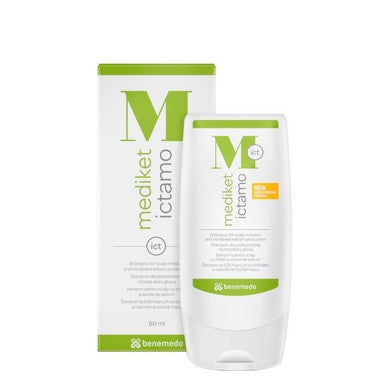 Медикет Иктамо е дерматологичен шампоан, приложим при себореен дерматит на скалпа, който може да бъде съпроводен със симптоми на сърбеж, повишена секреция на себум, струпеи, възпаления и псориазис. С мощно антибактериално и противогъбично действие, благодарение на включените активни съставки, които балансират състоянието на кожата, като намаляват секрецията на себум до оптимални нива. Той е разработен съвместно с дерматолози. Не съдържа парабени, оцветители и парфюми. Предлага се в опаковка от 80 мл.