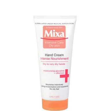 Интензивно подхранващият крем за ръце за суха до много суха кожа на Микса трайно възстановява кожата. В резултат кожната бариера е регенерирана, ръцете са добре хидратирани и подхранени, успокоява и омекотява сухата до много сухата кожа на ръцете, благодарение на концентрацията от алантоин. Формулата на крема е тествана под медицински контрол. Предлага се в опаковка от 100 мл.