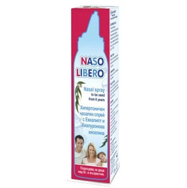 Назо Либеро е хипертоничен назален спрей, съдържащ натурална морска вода, обогатена с евкалипт и хиалуронова киселина. Благодарение на комбинацията от натурални съставки, той отпушва горните дихателни пътища и отстранява нежеланите секрети. Препоръчва се при синузит, настинки. Спомага за улесняване на дишането при сенна хрема и алергии. Може да се използва и като постоперативна назална грижа. Предназначен за ежедневна хигиена на носа. Може да се използва от възрастни и деца над 6 години. Предлага се в опаковка от 100 мл.