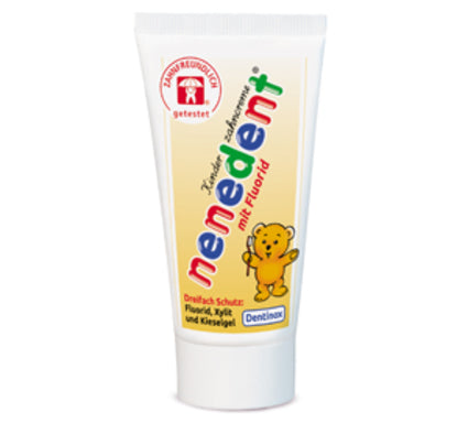 Пастата Ненедент с флуорид е специално разработена за бебешката възраст и е напълно безопасна. С високо съдържание на ксилитол, който възпрепятства причиняващите кариес бактерии и стимулира реминерализацията. Не съдържа захар, оцветители и консерванти, както и ментол. С неутрално Ph. Предлага се в опаковка от 50 мл.
