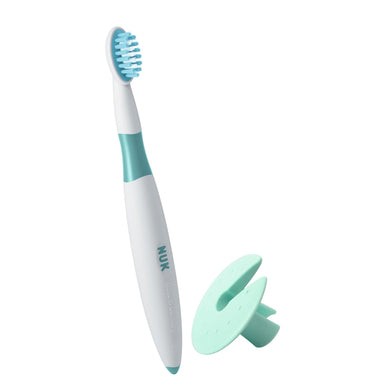 Четката за зъби на Нук е предназначена за деца над 12 месеца. Има заоблена глава и връхчета, както и ергономична удобна дръжка. Четката почиства детските зъби и венци, а предпазният ринг не позволява детето да се нарани при употреба. Предлага се в опаковка от един брой.