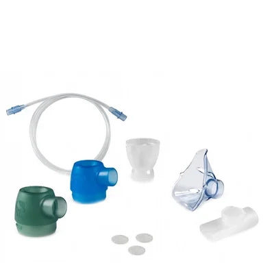 Предназначени за инхалаторa Омрон Дуобейби. Аксесоарите от Omron се предлагат в опаковка от 1 брой въздухопровод, 3 броя филтри, 1 брой маска за деца, 1 брой накрайник за уста и разпрашител с две глави (синя и зелена).