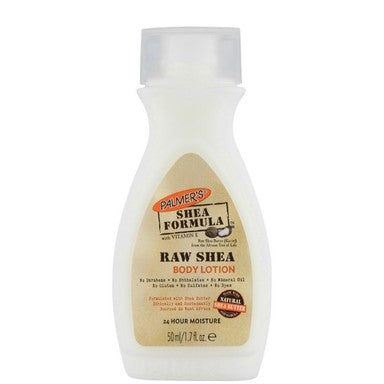 Лосионът за тяло с шеа на марката Палмърс е предназначен за ежедневно подхранване и хидратиране на кожата. Той подобрява нейната еластичност и осигурява хидратация за 48 часа. Комбинацията от африканско масло от шеа /карите/, масло от марула, овес и витамин Е действа като антиоксидант, подмладяващ кожата, омекотява я и я защитава. Без парабени, фталати, сулфати, глутен, минерално олио и оцветители. Предлага в опаковка от 50 мл.