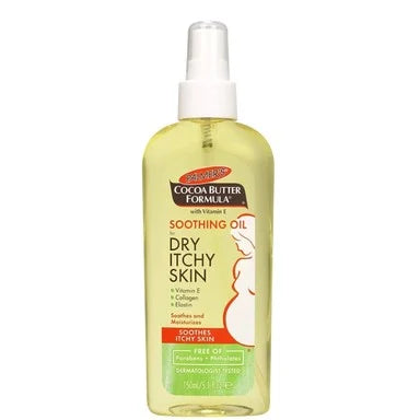 Palmer's овлажняващо олио за бременни с успокояващ ефект против белези (стрии) изглажда, хидратира и омекотява сухата и сърбяща кожа по време на бременността. Олиото Палмърс предотвратява образуването на стрии по време на бременност или при колебания в теглото, благодарение на съдържанието на чисто какаово масло, обогатено с витамин Е, сусамово масло, кератин, колаген и еластин, които проникват дълбоко в кожата. Този продукт е предназначен за суха и раздразнена кожа. Изглажда, овлажнява и успокоява чувствителната кожа, като я прави мека и гладка, подобрявайки нейната еластичност. С лека, немазна формула. Клинично и дерматологично тестван. Без парабени. Предлага се в опаковка от 150 мл.