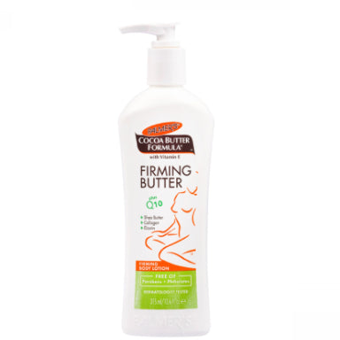 Palmers стягащ лосион за тяло след раждане с Q10+ съдържа растително масло, колаген, еластин, витамин Е, жен-шен чисто какаово масло и Q10+, съчетани в специално разработена формула с цел подпомагане еластичността на кожата и нейното хидратиране, омекотяване и подхранване. Този богат на антиоксиданти лосион на Палмърс подхранва, хидратира и изглажда кожата в дълбочина, предпазвайки от образуване на стрии. Стягащият лосион за тяло може да се използва след бременност и загуба на тегло. При редовна употреба, кожата е видимо по-стегната само за 6 седмици. Дерматологично тества продукт без парабени. Предлага се в опковка от 315 мл.