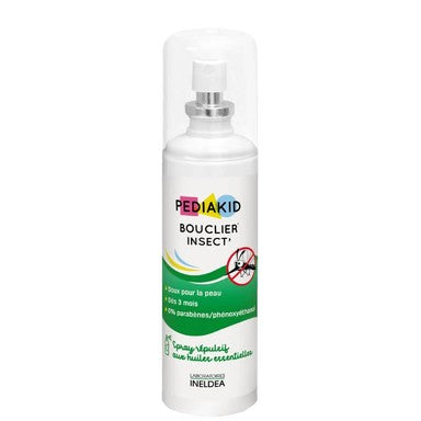 Спреят Педиакид съдържа комбинация от натурални съставки и етерични масла, което го прави подходящ за употреба при деца над 3-месечна възраст. Продуктът успокоява кожата и намалява сърбежа след ужилване от комари, кърлежи, мухи, оси и пчели. С аромат на портокал. Без парабени и феноксиетанол. Предлага се в опаковка от 100 мл.