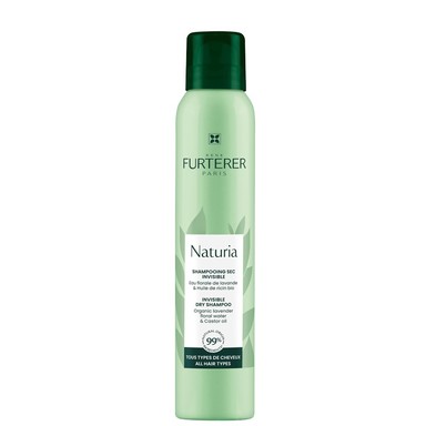 Натуриа на Рене Фюртерер е сух шампоан с невидим ефект. Формулата му съдържа 4 абсорбиращи пудри, които абсорбират себума и замърсяванията, придавайки обем и лекота на косата. Цветът му се слива с цвета на скалпа, за да създаде естествен завършек на прическата, без следи. Вложените етерични масла оставят свеж и приятен аромат върху косата. С 99% съставки от естествен произход. Предлага се в опаковка от 200 мл.