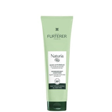 Натуриа млечен балсам от Рене Фюртерер е продукт, който незабавно разплита косата без да я утежнява. Формулата му е обогатена с флорална вода от органична лавандула и органично рициново масло. С млечна текстура и флорален аромат. Подходящ е за честа употреба и за всеки тип коса. Може да се използва от цялото семейство и деца над 3-годишна възраст. Съдържа 99% натурални съставки, а 11% от всички съставки са от органично земеделие. Без парабени и силикони. Тестван под дерматологичен и педиатричен контрол. Предлага се в опаковка от 150 мл.