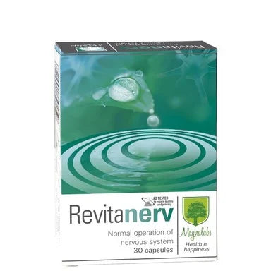 Ревитанерв от Магналабс е подходящ за хора подложени на стрес, напрежение, депресивни състояния, полагащи активен умствен и физически труд, с чувство за отпадналост и хронична умора. Действието му благоприятно повлиява нормалното функциониране на нервната система и умствената концентрация. Повишава устойчивостта на организма към стрес и безпокойство. Предлага се в опаковка от 30 капсули.