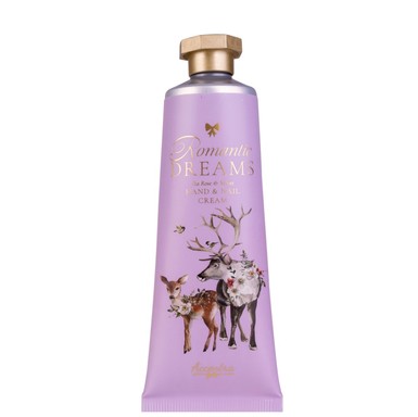 Романтик Дриймс Крем за ръце подхранва и хидратира кожата в дълбочина, предпазвайки я от неблагоприятните атмосферни условия. С приятен аромат на чаена роза и кадифе и подходящ за всекидневна употреба. Предлага се в опаковка от 60 мл с весел дизайн с елен.