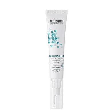 Стимулиращият гел Себомакс HR на Биотрейд е предназначен за жени и мъже, страдащи от косопад и/или алопеция ареата. Продуктът подпомага растежа на косата при изтъняване на косъма и загуба на коса в малки участъци по скалпа и брадата. Укрепва космените фоликули и подобрява плътността и гъстотата на косата. Подобрява микроциркулацията на скалпа и засилва жизнения цикъл на космите. Активира естествения жизнен цикъл на растеж на косъма, стимулира растежа на нова коса и намалява реактивния косопад при жени, причинен от стрес, заболяване, бременност. Гелът не повлиява цялостното оплешивяване при мъже, а само временно разреждане на косата. Предлага се в опаковка от 26 мл.