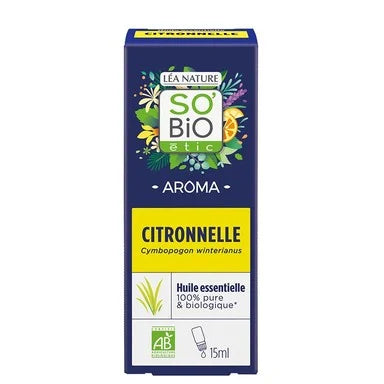Този продукт на Собио етик е масло от цитронела, подходящо за употреба срещу ухапване от комари и в кулинарията за придаване на екзотичен вкус. Характерната миризма на лимонената трева отблсъква комарите и придава завършен вкус към ястията. Предлага се в опаковка от 15 мл.