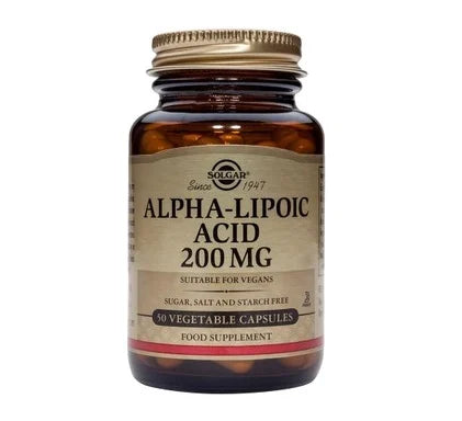 Този продукт на американския производител Солагар е хранителна добавка, съдържаща алфа-липоева киселина, която е силен антиоксидант. Тя допринася за по-доброто усвояване на глюкозата и спомага за контрола на кръвната захар. Алфа-липоевата киселина спомага предпазването на човешкия организъм от свободните радикали, които се образуват при дишане, емоционален стрес, храносмилане и сън. Тя забавя стареенето, увеличава физическите способности при спортуване и предпазва черния дроб. Предлага се в удобна опаковка от 50 капсули.
