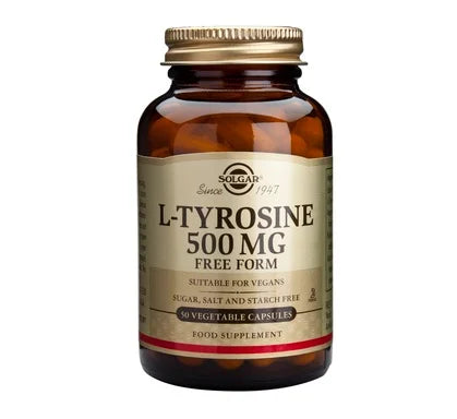L-tyrosine на американския производител Солгар съдържа л-тирозин, който оказва влияние върху будността на ума и настроението. L-Tyrosine е основен хранителен компонент за мозъка, тъй като е главен елемент на различни невротрансмитери. Спомага за производството на меланин, подсилва цвета на косата и кожата и е важен за синтеза на хормоните на щитовидната жлеза. Не съдържа захар, сол, скорбяла, глутен, пшеница, мляко и млечни продукти, соя, мая, консерванти, подсладители, изкуствени аромати и оцветители. Продуктът е подходящ за вегетарианци. Предлага се в опаковка от 50 капсули.