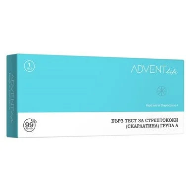 Комплектът за бърз тест Адвент Лайф Стреп А е имунохроматографски бърз тест за предполагаемо откриване на антигени на Streptococcus от група A в проби от гърлото. Този комплект е предназначен за използване като помощно средство при диагностицирането на стрептокок А инфекции. Резултатът може да бъде надежден само, ако инструкциите се следват точно. Този тест предоставя предварителна информация. При положителен резултат е необходима консултация с лекар.