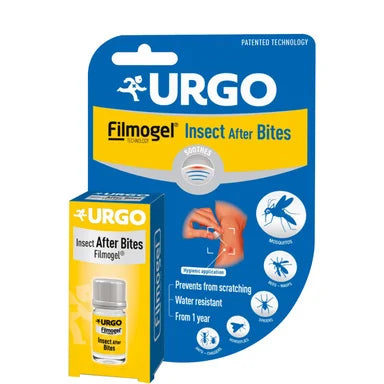 Урго Филмогел след ухапване от насекоми е течна лепенка, която е подходящ за употреба след ухапване от насекоми (комари, оси, конски мухи, паяци, пчели, акари). Подходящ за деца над 1 годишна възраст. При нанасяне Урго Филмогел образува защитен филм, който облекчава усещането за сърбеж, защитава и предпазва от разраняване и инфектиране на кожата. Не се отлепва при контакт с вода (водоустойчив). Предлага се в опаковка от 3.25 мл.