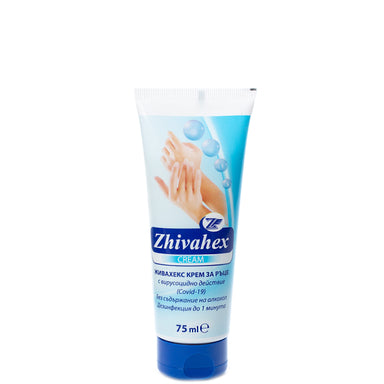 Живахекс Крем за дезинфекция на ръце притежава бактерицидно, вирусоцидно и фунгицидно действие. Едновременно дезинфекцира и подхранва кожата на ръцете. Подходящ е за ежедневна и многократна употреба. Има силно изразен антисептичен ефект, благодарение на съдържащия се в него хлорхексидин диглюконат. Въздейства бързо върху микроорганизмите. Оптималната комбинация от хлорхексидин диглюконат, дерма протектори, овлажнители и млечна киселина осигурява: дезинфекция до 1 минута, благоприятен ефект върху кожата на ръцете и филм, който създава дълготрайна защита. С вирусоцидно действие без съдържание на алкохол. Омекотява кожата и бързо се абсорбира. Предлага се в опаковка от 75 мл.